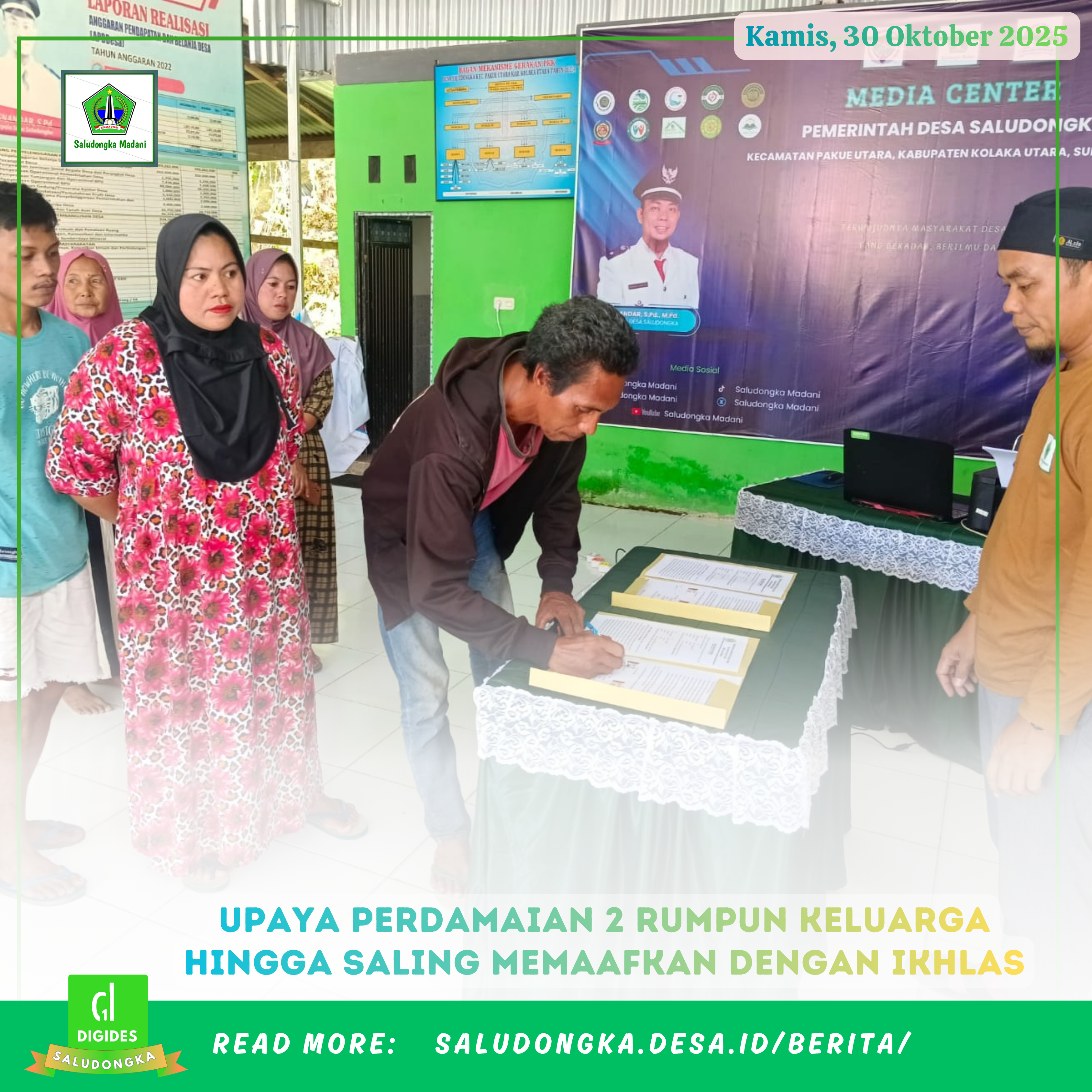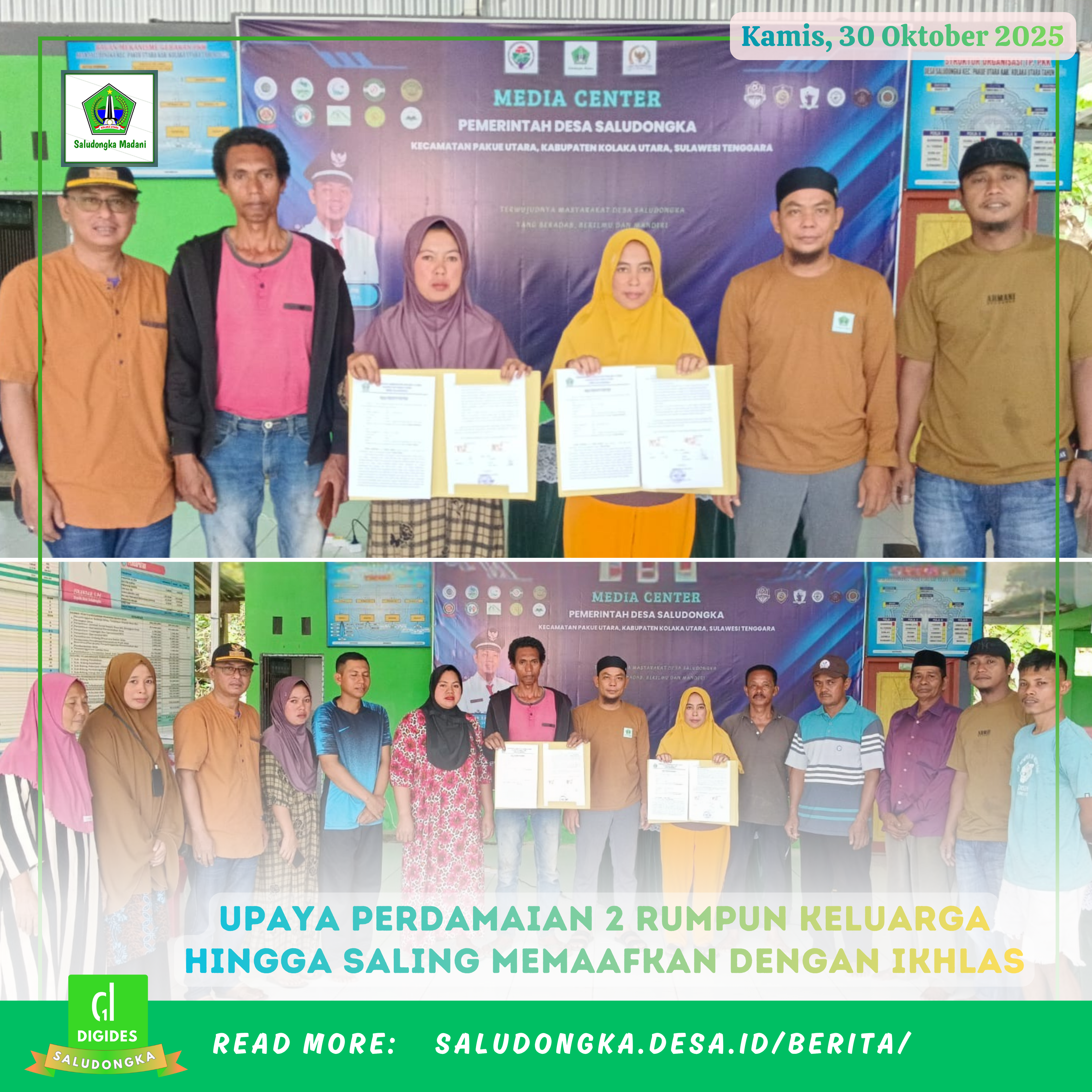 SALUDONGKA .ID - KOLAKA UTARA – Pemerintah Desa Saludongka, Kecamatan Pakue Utara, Kabupaten Kolaka Utara, berhasil memfasilitasi perdamaian antara dua warganya yang terlibat perkelahian dengan menerapkan prinsip Keadilan Restoratif (Restorative Justice - RJ). Upaya mediasi ini mengakhiri perselisihan yang terjadi antara sdr. “Ali” dengan “Asri” pada hari Ahad, 7 September 2025 yang lalu.